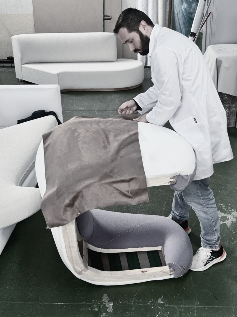 Cada miembro del equipo se dedica a un proceso específico en la confección artesanal de nuestros muebles. Con un respeto profundo por la tradición y un compromiso inquebrantable, cada pieza de Studio Bañón se elabora con la máxima atención al detalle. El enfoque meticuloso en cada proceso refleja la dedicación que se pone en la construcción de nuestros muebles. Todos los procesos se realizan de manera artesanal, y los artesanos, silleros, costureras y tapiceros pasan por una formación exhaustiva antes de unirse al equipo y a la familia Bañón.